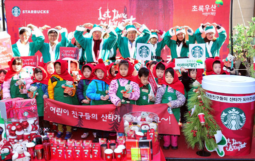 ㈜스타벅스커피 코리아는 9일 서울 무교동에서 초록우산 어린이재단(회장 이제훈)과 함께 소외계층 어린이 후원을 위한 ‘산타 바리스타’ 캠페인을 알리는 모금 행사를 진행했다. 산타 복장으로 분한 스타벅스커피코리아 이석구 대표이사와 스타벅스 바리스타 30여명을 비롯해, 초록우산 어린이재단 이제훈 회장과 재단 홍보대사인 2014년 미스코리아, 인근의 서울시청 어린이집 아동 등 100여명이 자원봉사자로 행사에 참여했다. 모금 행사에 앞서 올해 초록우산 어린이재단에 지원되는 총 3억2100여 만원의 ‘2014 스타벅스 희망기금’ 전달식도 진행했다.