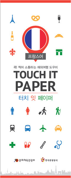 한국관광공사 국외여행센터는 해외 현지에서 응급 상황 발생 시 대응할 수 있도록 그림문자로 의사소통 할 수 있는 포켓판 안전 그래픽 가이드 ‘터치 잇 페이퍼’(Touch It Paper) 3종(프랑스어, 스페인어, 러시아어)을 발간했다.