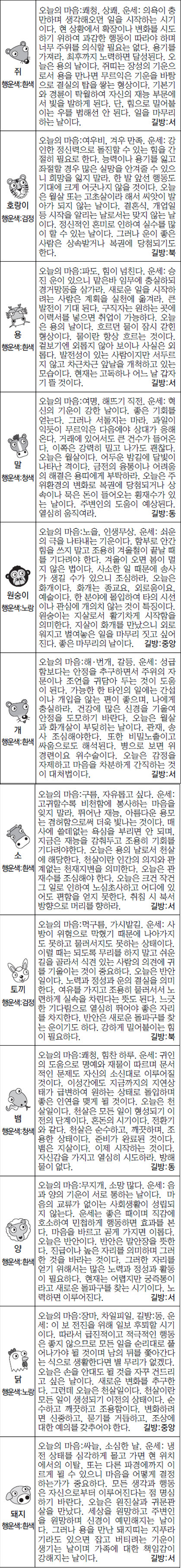 [스포츠동아 오늘의 운세] 2016년 3월 11일 금요일 (음력 2월 3일)