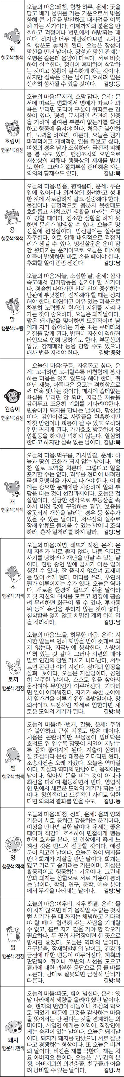 금일복권, 주식, 부동산매입 행운의 띠: 쥐,용,원숭이(토요일:소,뱀,닭)