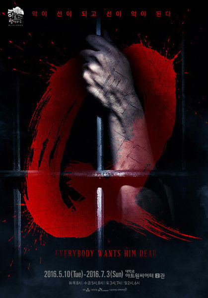 아동대상 성범죄, 연쇄살인 등 비인간적인 강력 범죄들이 연속으로 발생하면서 국민들의 불안감은 점점 높아지고 있다. 이처럼 끊임없이 나타나는 인간의 ‘악’의 끝은 과연 어디일까. 연극 Q는 작은 방안에 네 명의 인물이 등장한다. 강자가 약자가 되고 약자가 강자가 되며, 악이 선이 되고 선이 악이 되는 이야기를 그린다. 모든 등장인물의 뒤에는 ‘보이지 않는 손’이 등장한다. 네 명의 인물은 이 ‘보이지 않는 손’을 서로 이용해 작은 방안을 벗어나기 위해 치열한 게임을 시작한다. 김기무, 이준혁, 주민진, 김승대, 임철수, 강기둥, 김준겸, 차용학, 조훈, 고훈정, 김이삭, 박형주가 출연한다. 대본을 쓰고 연출을 맡은 요세프 케이는 “어벤져스에 영웅들만 나온다면, 악당들만 나오는 작품은 어떨까 하는 유치하고 호기심에 가득한 아이 같은 모습으로 이 작품을 쓰기 시작했다”라고 밝히고 있다.