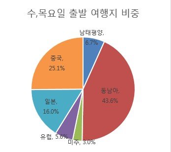 여가 문화 확산으로 주말을 이용한 단기여행객이 증가하면서 수요일과 목요일에 출발하는 여행객 비중이 높은 것으로 나타났다.