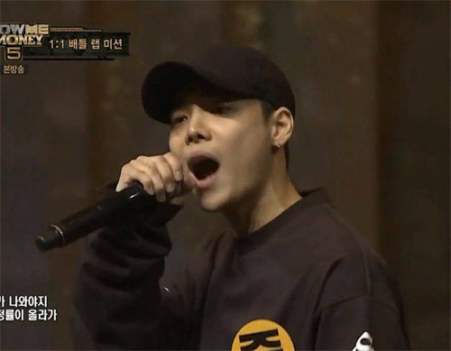 래퍼 ‘원’이 일대일 랩 배틀을 하는 모습. ‘쇼미더머니’ 시즌5 지원자인 그는 이미 시즌4에서 얼짱 래퍼로 화제를 모았다. 엠넷 화면 캡처