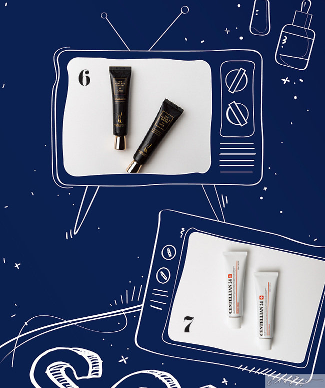 7 센텔리안24 마데카 크림 센텔리안24는 동국제약이 2015년 4월 론칭한 코스메슈티컬 브랜드. 첫 제품인 마데카 크림 출시 이후 홈쇼핑 방송마다 완판을 기록하며, 출시 1년 만에 1백만 개를 판매해 밀리언셀러를 달성했다. ‘마데카솔’의 주성분인 센텔라아시아티카 성분이 함유됐으며, 연고 바르는 느낌으로 바르면 촉촉함이 오래 지속되고 피부 장벽도 건강해진다.