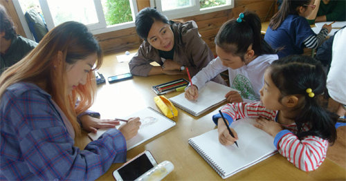 매주 토요일에 열리는 ‘꿈다락 토요문화학교’의 주말문화여행 프로그램에 참여한 학생들이 지도 강사와 함께 그그림을 그리고 있다. 한국문화예술교육진흥원 제공