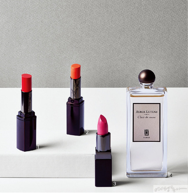 Lip Stick 오렌지와 핑크 립스틱이 레드 컬러와 함께 유행을 선도할 전망. 립 파르페 크리미 컬러밤 레드 벨벳 & 쥬시 파파야, 벨루어 러버스 립 컬러 프렌치 키스 각 3.6g 3만9천원 로라메르시에.