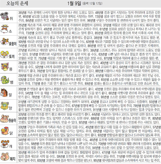 [오늘의 운세/1월9일]