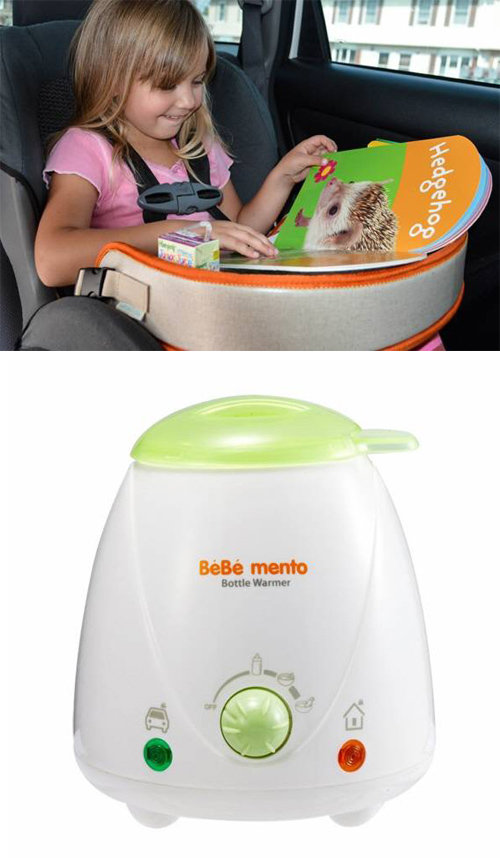 설 연휴 기간 귀성·귀경길에 도움이 될 만한 키즈트레이, 보틀워머(위부터). 11번가 제공