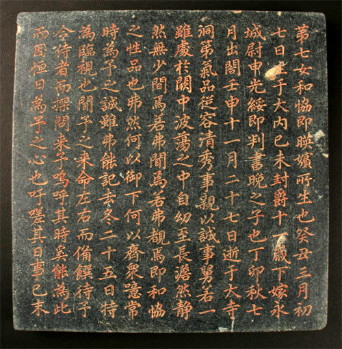 그런데 한중록이 전하는 영조의 심경과 사뭇 거리가 있는 기록이 최근 화협옹주 묘에서 발견됐다. 고려문화재연구원이 경기 남양주시 삼패동 화협옹주 묘를 발굴하는 과정에서 영조가 쓴 지석(誌石·죽은 사람의 인적 사항 등을 기록한 판석)이 나온 것이다. 지석엔 앞뒷면과 옆면에 걸쳐 총 394개 글자가 새겨져 있는데 ‘임금이 직접 지은 글(御製和協翁主墓誌)’임을 밝히고 있다. 부왕이 옹주를 위해 지석을 남긴 사례는 극히 드물다고 한다. 지석 내용은 먼저 간 딸에 대한 사무치는 그리움이 절절하다. 영조는 화협옹주가 죽기 이틀 전인 1752년 11월 25일 병문안을 위해 직접 옹주의 집에 행차한 일을 상세히 적고 있다.