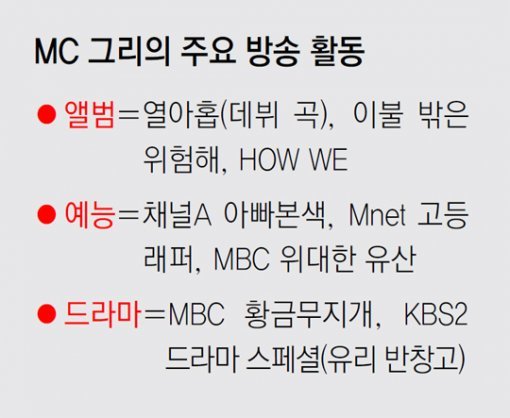 그는 곧 새 음반을 발표할 계획이다. 지난해 발표한 데뷔 곡 ‘열아홉’은 자신의 성장 과정과 가정사 등을 다룬 가사가 호응을 얻으며 각종 음원 차트를 휩쓸었다. “저만이 할 수 있는 가사를 쓰고, 노래를 만들고 싶어요. 아버지를 언급하거나, 일부러 지우려 하는 방식이 아닌 있는 그대로의 제 삶을 표현할 겁니다. 앞으로 김구라의 아들이 아닌 ‘MC 그리’의 활약을 기대해 주세요.”