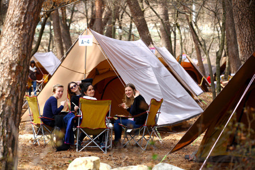 8일과 9일 이틀간 강원도 평창 솔섬오토캠핑장에서 열린 캠핑 페스티벌 ‘Let‘s Go 평창’에 참가한 외국인 캠핑객들. 이번 행사는 이틀 동안 아이스하키 관전, 영화 관람, 전통시장. 바다부채길 탐방 등 다양한 프로그램을 진행했다. 사진제공|한국관광공사