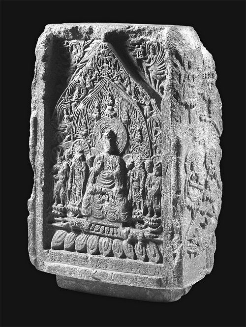 아미타불과 보살이 새겨진 통일신라시대 작품 ‘계유명전씨아미타불비상’. 국립대구박물관 제공