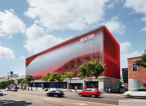 서울 갤러리아백화점 명품관 옆에 예술 작품 같은 독특한 외관의 건물이 들어섰다. 공기의 흐름을 모티프로 한 입체적인 모듈의 움직임으로 보는 각도에 따라 다른 모습을 연출하는 이곳은 기아자동차가 만든 신개념 복합 브랜드 체험 공간, ‘비트(BEAT)360’. 이곳은 상상력과 테크놀로지의 집약체인 자동차에 관한 모든 것을 상상하고 체험하고 누릴 수 있는 자리다.