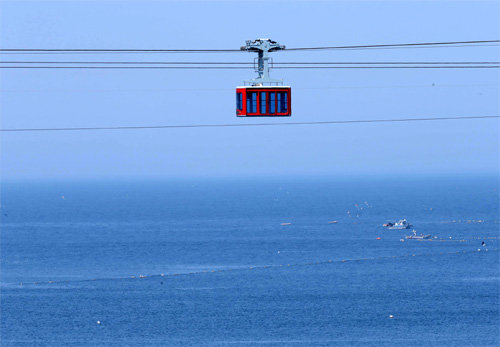 지난달 26일 개장한 강원 삼척 해상케이블카가 팽팽하게 당겨진 줄을 따라 왔다 갔다 합니다.