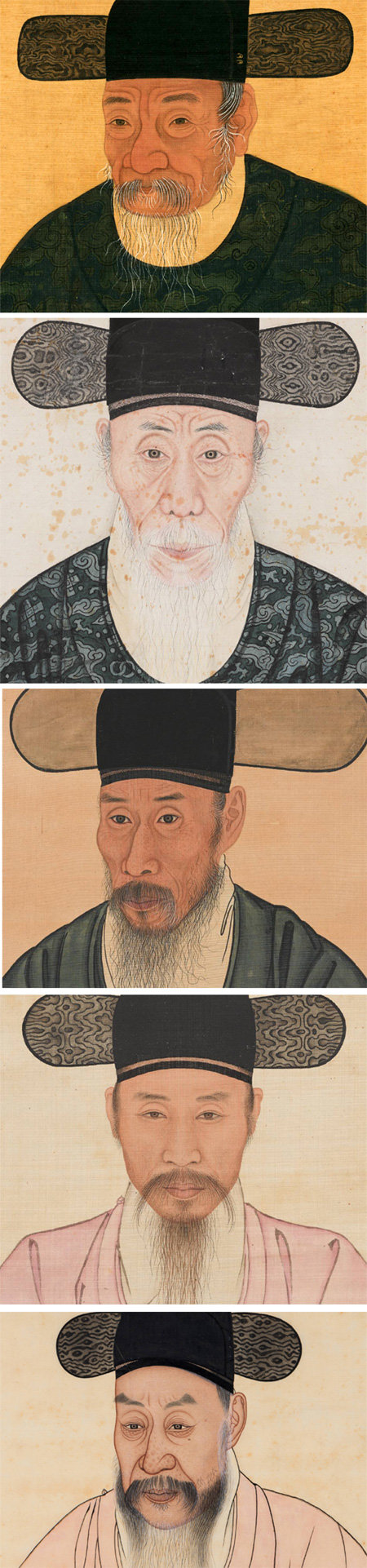 1대 강현, 2대 강세황, 3대 강인, 4대 강이오, 5대 강노의 초상화(위부터). 이번에 환수된 문화재는 강노를 그린 그림이다. 조선시대 사대부 직계 5대의 초상화가 확보된 것은 처음이다. 국외소재문화재재단 제공