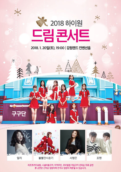 20일에는 ‘2018 하이원 드림콘서트’가 오후 7시 컨벤션호텔 컨벤션홀에서 열린다. 볼빨간사춘기, 걸그룹 구구단, 남성그룹 포맨, 서영은, 알리 등이 출연한다.