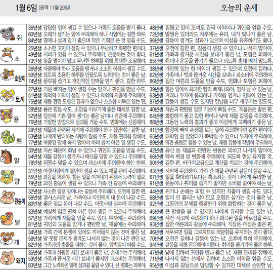 [오늘의 운세/01월06일]