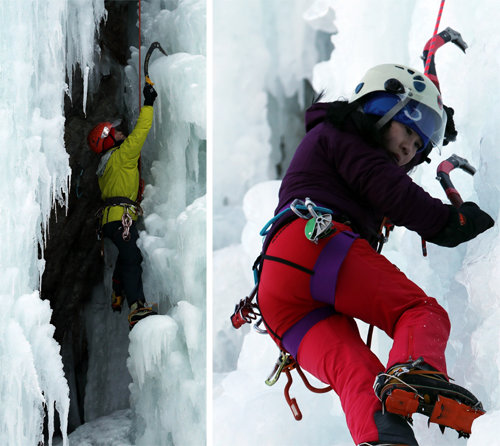 40m 빙벽에서 방금 내려온 최상범 씨(35·경남 김해시·교사)는 땅에 발을 딛자마자 다시 100m 빙벽을 오른다. 점심은 어떻게 하느냐는 말에 “시간이 없다”는 답이 돌아온다. 강추위에 얼음이 기준 이상으로 얼어 아이스스크루(자일 고정용 도구)를 박는 시간이 오래 걸렸단다. 지금 올라가면 반나절은 지나야 정상을 만난다. 보는 사람에겐 아찔한 광경이지만 그에게는 짜릿한 행복이다.