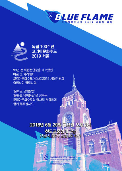 코리아문화수도의 원년도시로는 서울이 선정됐다. 이에 ‘코리아문화수도 2019 서울’의 성공을 위해 헌신할 서울위원회 출범식이 29일 오후 2시부터 서울 종로구 삼일대로 457에 위치한 천도교중앙대교당에서 열린다.