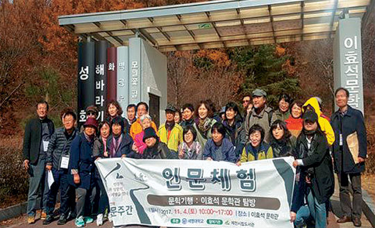 2018 인문주간에서는 전국적으로 ‘화해와 상생의 길’을 비롯해 ‘우리 동네 역사 알기’ ‘새롭게 알아가는 우리지역’ ‘다채로운 인문학 이야기’ 등을 주제로 다양한 프로그램을 선보인다. 지난해 인문주간 행사 중 세명대가 진행한 이효석 문학관 탐방 프로그램. 한국연구재단 제공