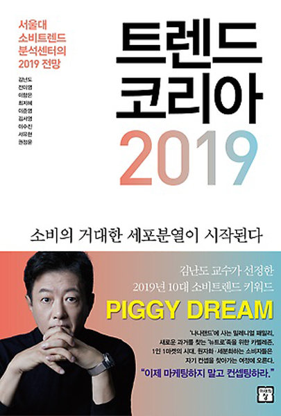 매년 이맘때 즈음이면 어김없이 베스트셀러 상단에 배치되는 서울대 소비트렌드분석센터의 ‘트렌드 코리아’ 시리즈. 드디어 2019 전망이 나왔다. 김난도 교수는 2019년의 소비흐름을 “원자화·세분화하는 소비자들이 환경변화에 적응하며 정체성과 자기 컨셉을 찾아가는 여정”이라고 한 줄로 요약했다. 빠르게 세포화하는 ‘1인 마켓’의 시대를 내다보며 “이제 마케팅하지 말고 컨셉팅하라”고 조언한다. 2019년은 기해년, 황금돼지의 해이다. 황금돼지의 기운이 ‘자기실현적 예언’의 효과를 거두게 되었으면 하는 마음으로 2019년 10개의 키워드 두운을 ‘돼지꿈’을 의미하는 ‘PIGGY DREAM’으로 맞춘 것도 눈길을 끈다.