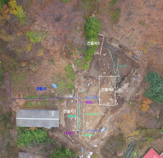 한편, 조사 지역 북쪽에서는 고려 말부터 조선 초까지 축조한 것으로 추정되는 건물지 2기(건물지2·3)와 배수로가 확인됐다.