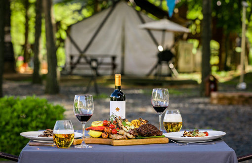 럭셔리 글램핑 바비큐 디너는 전나무숲 글램핑 빌리지에서 오후 6시부터 9시까지 즐길 수 있다. 메뉴는 랍스터, 프리미엄 안심, 등심 스테이크, 왕새우 구이, 탄두리 마살라 치킨, 허브 마리네이드 소시지, 모둠 채소, 식사류, 후식류 등이 제공된다. 글램핑동은 카바나, 침대식 소파, TV, 냉장고 등의 편의시설을 구비했다.