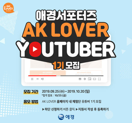 애경산업이 10월 20일까지 ‘AKLOVER 유튜버 1기’(사진)를 모집한다.