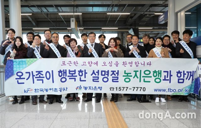 이날 나주 본사 인근에 위치한 광주송정역에서는 권기봉 농지관리이사를 비롯해 임직원 40여명이 농지연금 알리기에 나섰다. 우리 쌀로 만든 떡과 리플렛을 귀성객 약 1000명에게 나눠주면서 농지연금 가입을 권유했다.