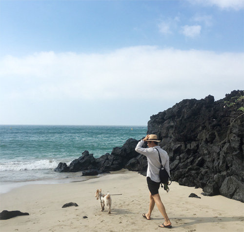 노견 풋코와 만화가 정우열 씨는 바닷가에 자주 함께 나간다. 정 씨는 “서울에 오래 살았지만 이젠 풋코와 산책하다가 문득 찾아갈 바다가 없는 도시에서는 행복하기 어려울 듯하다”고 했다. 그가 만화로 전하는 풋코의 일상 이야기는 늙은 반려견과 함께 사는 독자들의 마음을 다독여 준다. 정우열 씨 제공