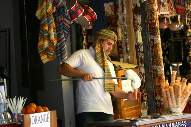 돈두르마는 우유나 염소젖에 설탕과 야생 란의 뿌리로 만든 살렙(Salep) 가루, 유향 나무에서 추출한 진액 등을 넣어 만든 터키식 전통 아이스크림이다.