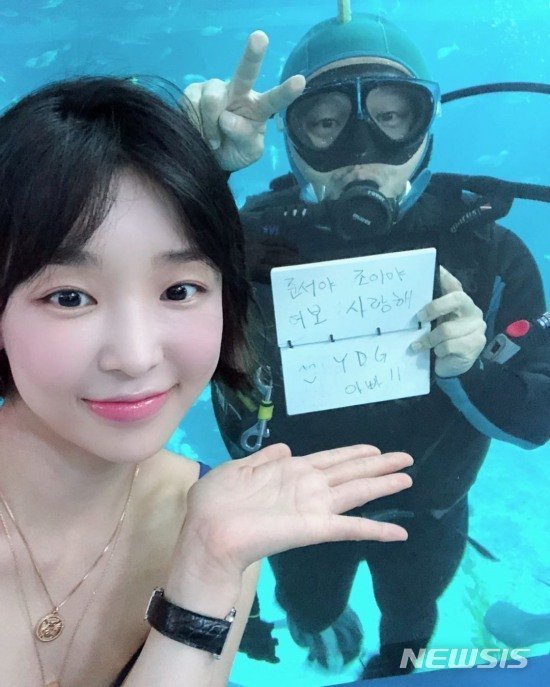 공개된 사진 속 양동근은 스쿠버 다이행을 하며 아내와 함께 포즈를 취하고 있다.