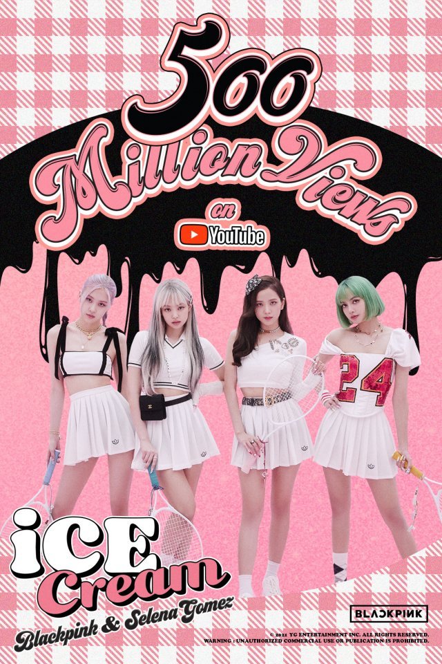 블랙핑크의 ‘아이스크림’ 뮤직비디오가 5억뷰를 돌파했다. 블랙핑크 통산 10번째 5억뷰이자 이는 K팝 걸그룹 최다 기록이다.