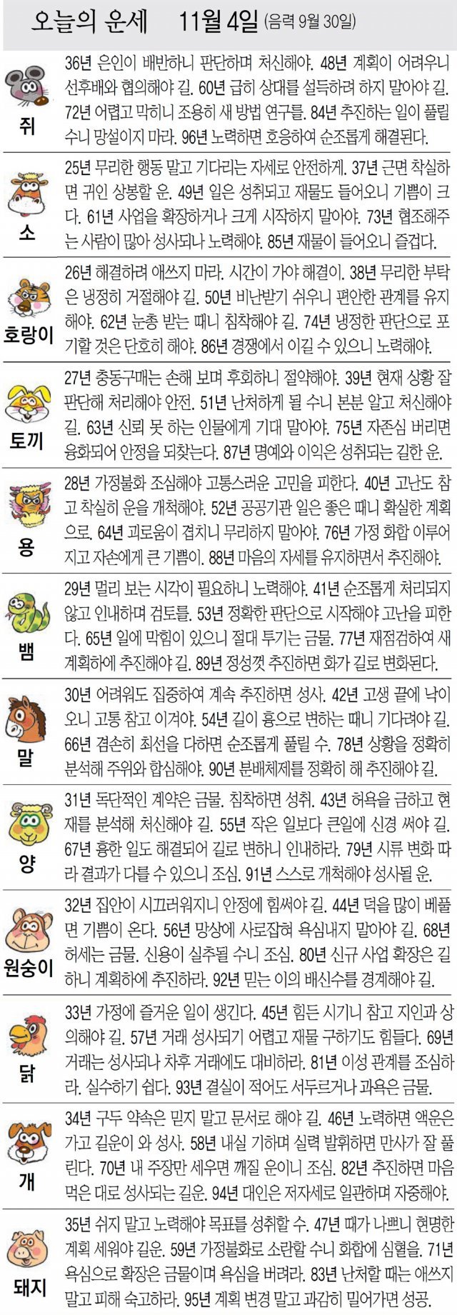 [오늘의 운세/11월 4일]