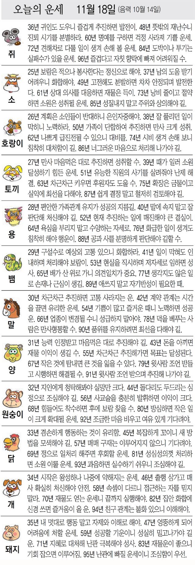 [오늘의 운세/11월 18일]
