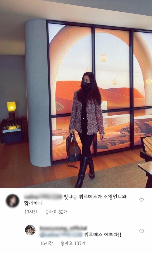고소영은 해당 가방의 품절 대란에 동참할 뿐 아니라, 직접 들고 다니는 모습까지 인증하며 뷔에 대한 팬심을 공고히 했다.
