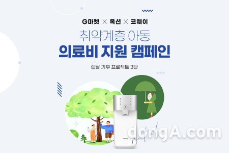 지마켓은 코웨이와 함께 ‘렌탈 기부 프로젝트 3탄’ 캠페인을 진행한다고 8일 밝혔다. 이달 한 달간 G마켓과 옥션에서 진행되는 이번 캠페인은 취약계층 아동에게 의료비를 지원하기 위해 기획됐다.