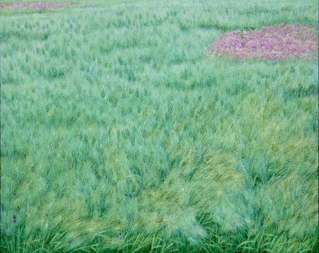 출품작 40점 중 신작 3점도 모두 보리밭 그림이다. 이중 ‘분홍빛 장다리꽃이 있는 보리밭’(1981년)과 ‘청보리-초록빛 안개’(2012년)는 마음에 들지 않아 올해 개작한 작품이다. 그는 “파기할까 생각했지만 내 자식이 부족하다고 버릴 순 없다”며 “과거의 저와 현재의 제가 합작한 작품”이라고 했다.