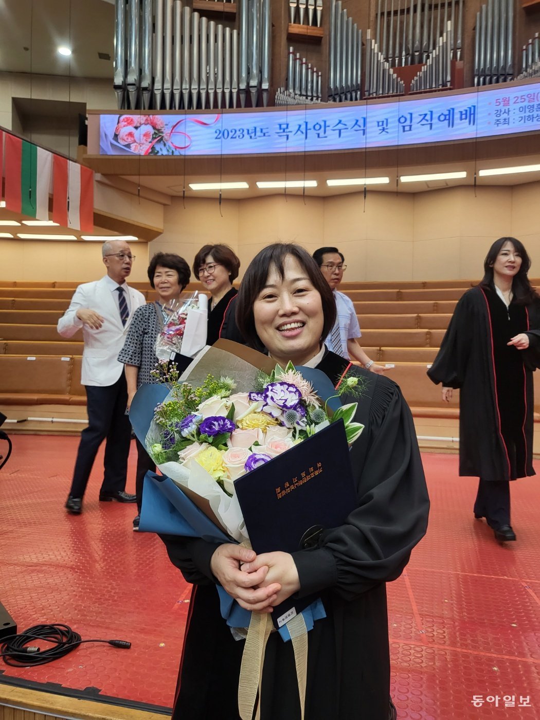 ―여성 목사에 대한 편견이란 어떤 걸 말하는 건가. “여성 목사가 장례식 집도를 하러 가면 남자 목사님이 와줬으면 좋겠다고 하는 분들이 간혹 있다. 또 남자 목사가 문제를 일으키면 개인 문제로 생각하는데, 여성 목사의 경우에는 ‘여자라서…’라며 자질론을 거론하기도 한다. 아직도 한국적인 가부장적인 문화가 남아있어서 그런 것 같은데, 여성 목사들이 더 많아지면 바뀌지 않을까 한다. 그런 면에서 이번에 한꺼번에 47명의 여성 목사가 탄생한 것은 매우 큰 의미가 있다고 생각한다.”