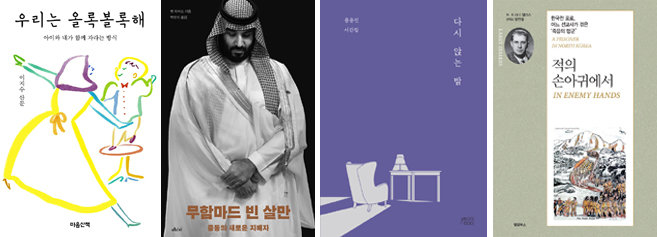 ● 우리는 올록볼록해(이지수 지음·마음산책)=일본 문학을 한국에 소개하는 번역가가 자신의 육아 경험을 쓴 에세이. 정성스럽게 차린 밥을 거부하는 아이에게 화가 났다가도 아이가 서툰 발음으로 “사랑해”라고 말하면 고된 육아 피로가 풀리는 엄마의 마음을 솔직하게 담았다. 1만5000원.