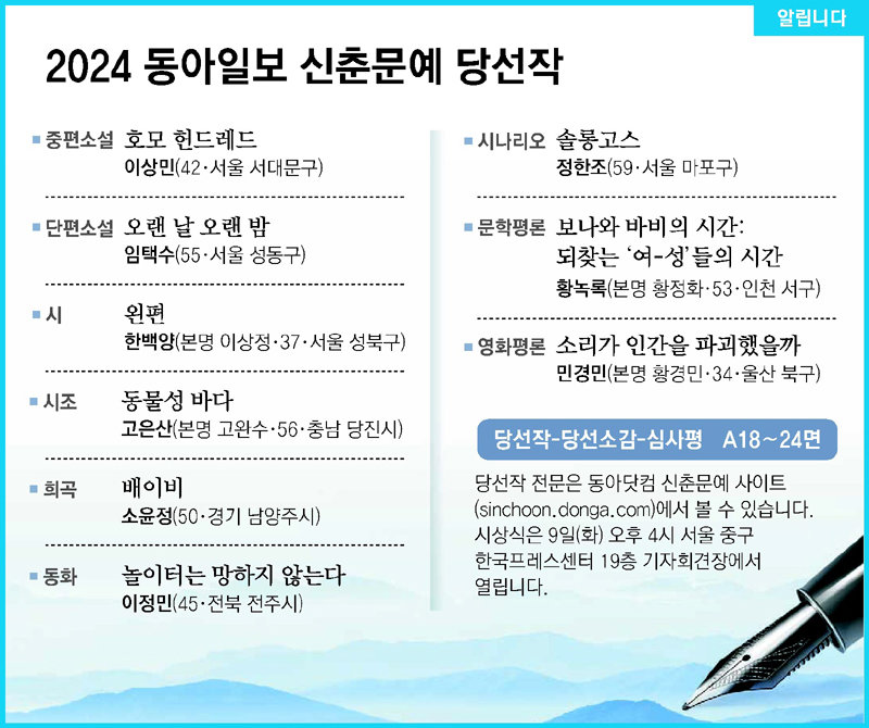 [알립니다]2024 동아일보 신춘문예 당선작