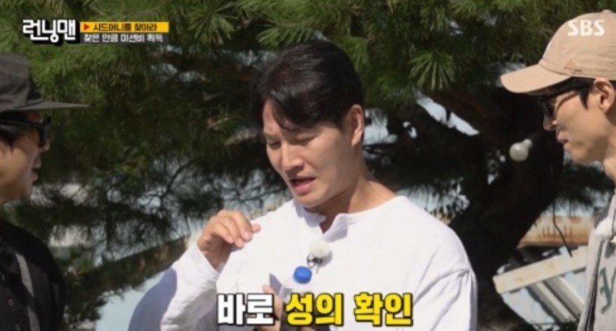 김강우는 12일 오후 방송된 SBS TV 예능물 ‘런닝맨’에 게스트로 나와 녹화 중간 김종국에게 흰 봉투를 건넸다.