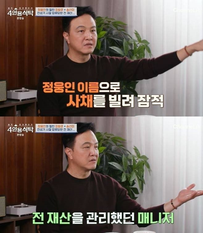 영화감독 장항준은 “사기를 당했다”며 “(매니저가) 거의 전 재산을 가지고 튀었다. 정웅인씨거 담보로 해서 돈 빌리고 도장도 다 갖고 갔다”고 부연했다. 정웅인은 “마지막에 차 찾으러 가서 (사채업자에게) 무릎을 꿇고 ‘남은 빚은 탕감해달라’고 했다. 처음으로 사람들 앞에서 무릎을 꿇은 것”이라고 했다.
