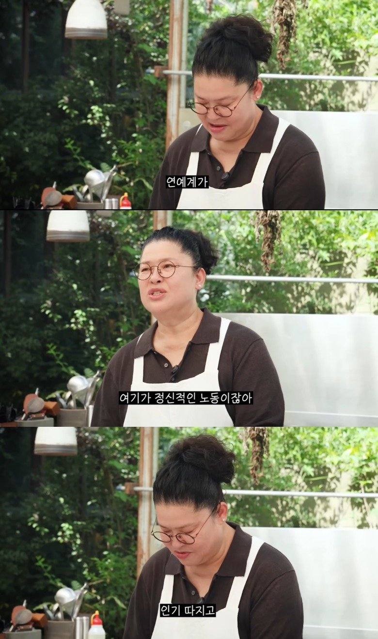그는 “여기 연예계가 정신적인 노동을 하는 곳이지 않나. 늘 성적표 따지고, 인기 따지고…”라고 말했다.