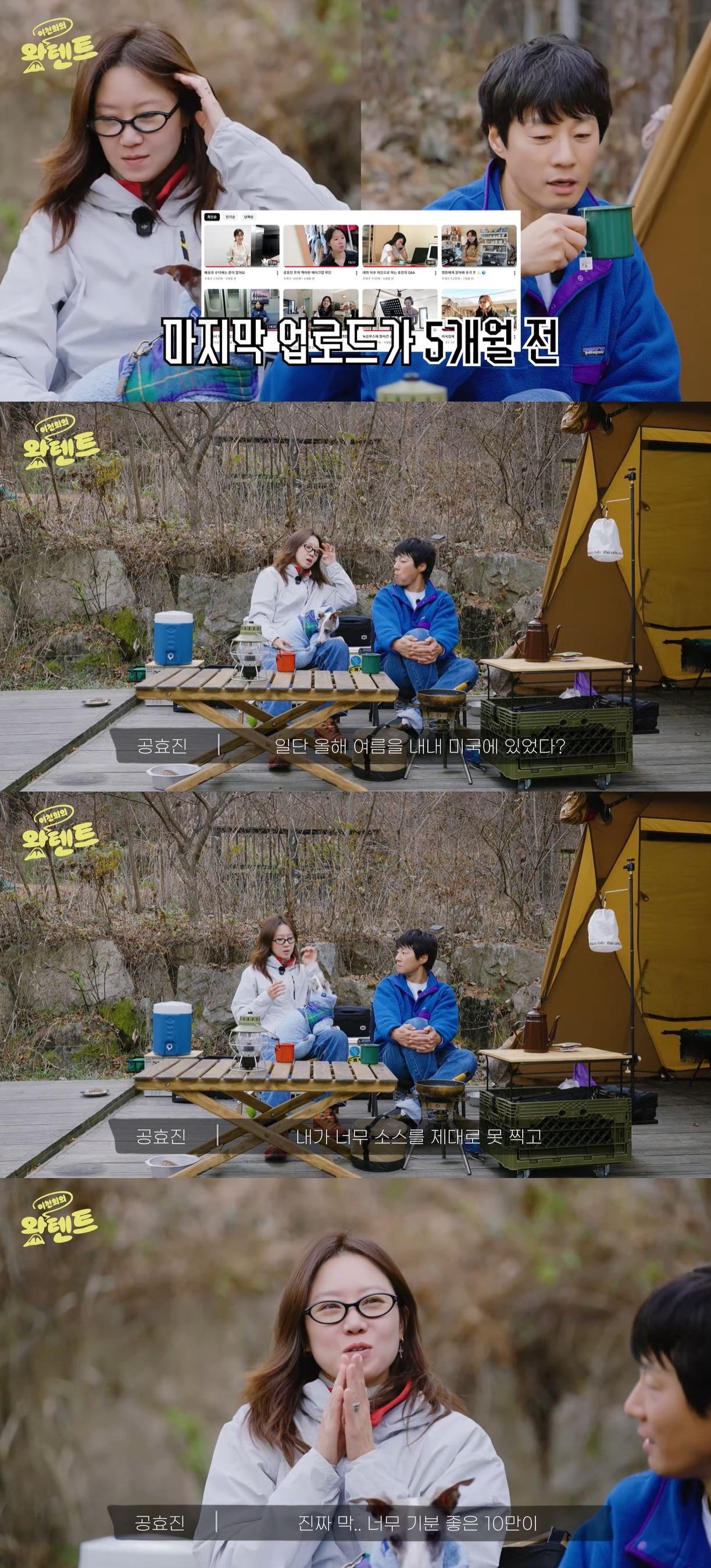 공효진은 “구독자 10만명을 돌파하긴 했다”며 “너무 기분이 좋았는데 영상 업로드 없이 시간이 지나면서 포기했었다. 근데 구독자가 그대로더라”라고 말했다.