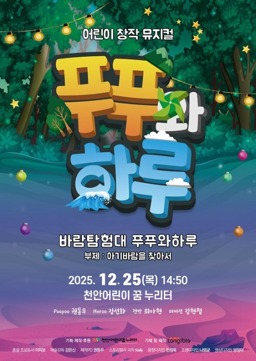 텐저블아트는 이날 천안 어린이꿈누리터 대공연장에서 입체음향 음연동화 ‘Stereophonic Sound, a Musical Fairy Tale’과 어린이 창작 뮤지컬 ‘푸푸와 하루 - 바람탐험대’ 등 두편의 공연을 진행할 예정이다. 이번 공연은 크리스마스를 맞아 어린이와 가족 관객에게 따뜻하고 의미 있는 추억을 선사하기 위해 기획됐다.