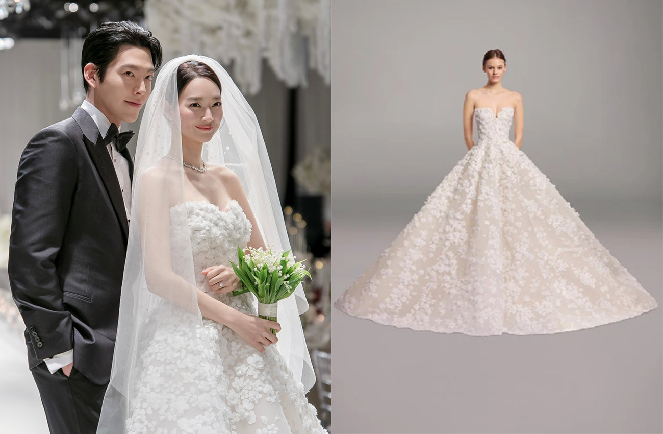 엘리 사브(Elie Saab) 2026년 봄 브라이덜 컬렉션 ‘Look 2’. 가격은 약 2만8600달러(약 4200만원)로 알려졌다. 엘리 사브 공식 홈페이지 캡처 신민아가 선택한 웨딩드레스는 레바논 출신 디자이너 엘리 사브가 이끄는 명품 브랜드 엘리사브(Elie Saab)의 제품이다. 해당 드레스는 엘리 사브의 2026년 봄 브라이덜 컬렉션 중 ‘Look 2’로, 가격은 약 2만8600달러(약 4200만원) 수준이다.