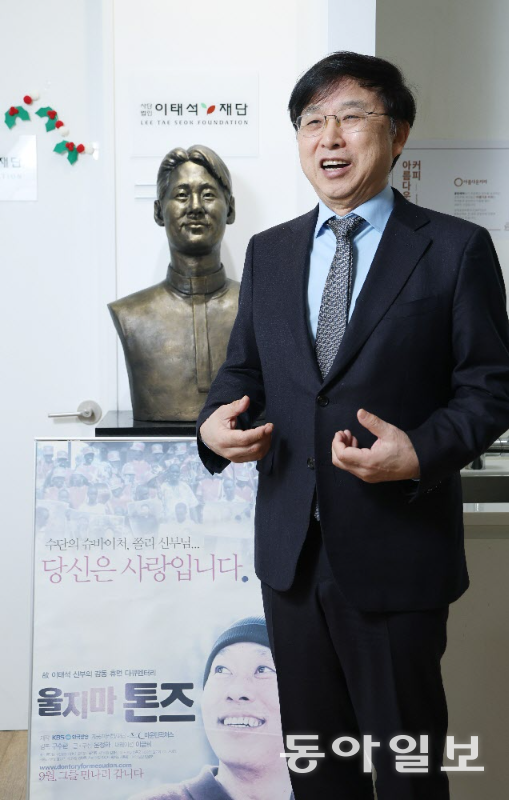 6일 서울 영등포구 광복회관에서 만난 구수환 이태석 재단 이사장은 “이 신부가 뿌린 씨앗이 이제 우리는 물론이고 세계 곳곳에서 싹을 틔우고 있다”라고 말했다. 이 신부의 이야기를 세상에 알린 ‘울지마 톤즈(2010년)’를 감독한 구 이사장은 이후 이태석 재단 이사장을 맡아 전 세계에 ‘이태석 정신’을 알리고 있다.