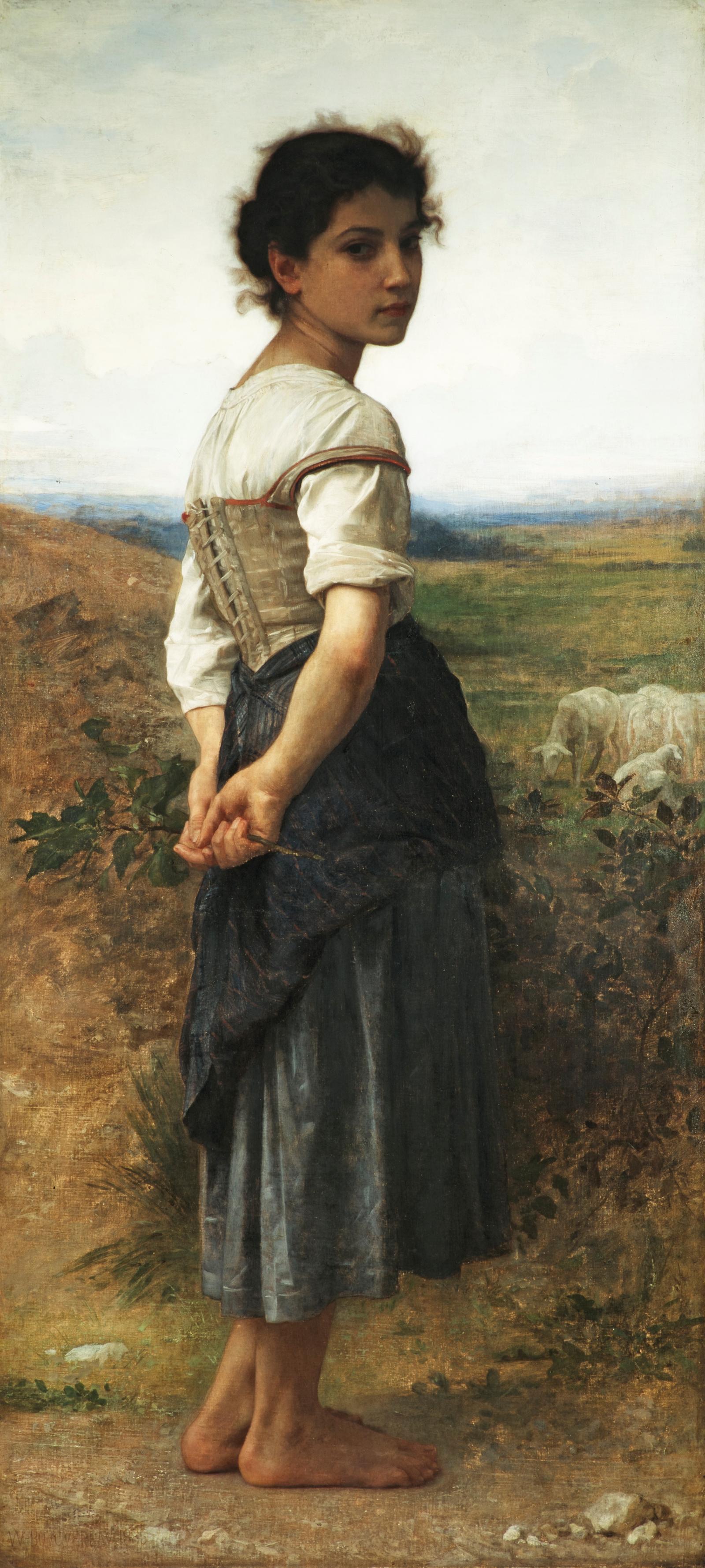 양들이 한가로이 풀을 뜯는 들판에 맨발의 소녀가 서 있다. 고동색 곱슬머리와 흘러내리는 옷 주름, 목가적 풍경이 섬세한 붓질과 부드러운 색채로 표현돼 고상한 느낌을 준다. 당당한 눈빛으로 관람자를 응시하는 이 소녀는 당장이라도 액자 밖으로 걸어 나올 듯 생동감이 넘친다.