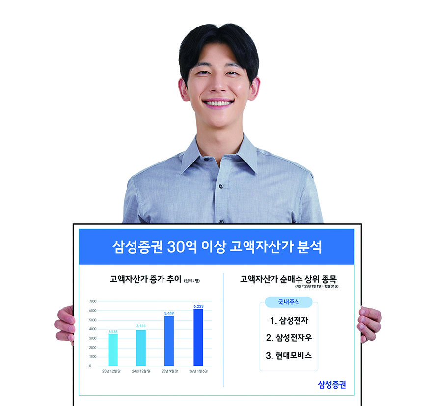 삼성증권은 예탁자산 30억 원 이상인 고객 수가 6일 기준 6223명으로 집계돼 2024년 말에 비해 58.2% 증가했다고 밝혔다. 같은 기간 삼성증권 고액자산가의 자산 규모도 크게 늘었다. 삼성증권은 “개인 고객 자산이 2024년 말에 비해 70% 가까이 증가해 약 135조 원으로 나타났다”고 밝혔다.